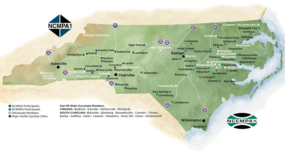 また、ノースカロライナ自治体第一電力局(NCMPA1)とノースカロライナ東部自治体電力局(NCEMPA)にマネジメントサービスも提供しています。