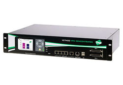 Digi TransPort VC7400は、Digi Connect WAN、ConnectPort WAN、Digi TransPortセルラールータを用いた数多くのリモートデバイスの接続に最適です。Digi TransPort VC7400は最大3,000台の同時クライアントに対応し、1Gbイーサネットポート、4ポート10/100Mbイーサネットスイッチ(DMZポート×1を追加)、統計・処理データを表示するフロントパネルカラーLCD画面を搭載しています。