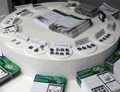ブース中央にはモジュールやルータ、ゲートウェイなどを一堂に集めた |