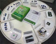 展示台では、モジュール、ゲートウェイ、ルータなど幅広い製品を紹介した |