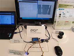 会場内にはデモコーナーも用意、NXP i.MX6ULベースの超小型組込みネットワークモジュール、顔認識と感情分析を用いたドライバーの安全運転を支援するプラットフォームのほか、ユーザー企業として、Digi TransPortWRシリーズを用いた富士通(株)の FENICS II M2Mサービス、 ConnectCore 6ULを使った(株)スマートドライブの安全運転管理システム、 Digi XBee ZigBeeおよびDigi XBee Wi-Fiによる(株)ソルクシーズの見守り支援システム「いまイルモ」、Digi TransPort WRシリーズとConnectCore 6ULを用いた(株)ソラコムの「 SORACOM Air for セルラー」の実演が行われ、多くの受講者が熱心にデモを見ながら、担当者に質問をする光景が見られました。