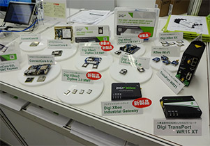 | 新製品を含むモジュールやルータなどを展示 |
