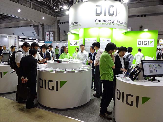 ディジ インターナショナルは、5月29日(水)~31日(金)の3日間、東京ビッグサイト(西3、4ホール)で開催された「Wireless Japan 2019(ワイヤレスジャパン2019)」に出展しました。 ディジ インターナショナルは、1億台以上のデバイスや機器の IoT実現の実績を持ち、802.11a/b/g/n Wi-Fi、3G/4G LTEセルラー、LPWA、ZigBee/802.15.4など多様なネットワークテクノロジーに対応したモジュール、ソフトウェア/ミドルウェア、デバイスクラウドを1つのメーカーで提供します。ブースでは、エッジコンピューティングIoT組込みプロセッサモジュール / SBC、Bluetoothハイブリッド対応XBee RFメッシュ通信モジュール、インダストリアル・エンタープライズ向けゲートウェイ / ルータ、セキュリティフレームワークなどを展示したほか、エナジーマネジメント、公共インフラ/スマートシティ、医療/ヘルスケア、インダストリアル、小売/リテール、輸送/運輸分野でのIoT活用シーンにフォーカスしたデモを行いました。 【主な展示製品】 ●13×19mm Bluetoothハイブリッド対応RFメッシュ通信モジュール「Digi XBee 3 Zigbee 3.0」 また、展示会場内の第7会場で開催された近距離無線セッションでは、「Digi ワイヤレス製品ロードマップとM2M/IoT最新事例」と題したセミナーを実施。これまで1億台を超えるデバイスを繋いできた実績を持つDigiの特長である、ZigbeeやWi-Fi、セルラーLPWA技術を搭載した最新通信モジュールのXBeeラインナップおよび、エナジーマネジメント、公共インフラ、医療/ヘルスケア、インダストリアル、小売/リテール、輸送/運輸などでのIoT・M2M実現事例をソリューションを交えて紹介し、多くの受講者が熱心に聴講しました。