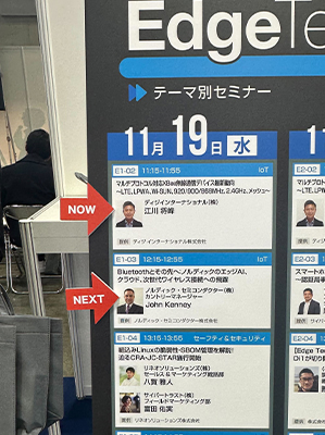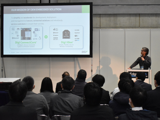 会期中は「マルチプロトコル対応XBee無線通信デバイス最新動向 ~LTE、LPWA、Wi-SUN、920/900/868MHz、2.4GHz、メッシュ~」と題して、弊社の江川