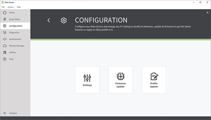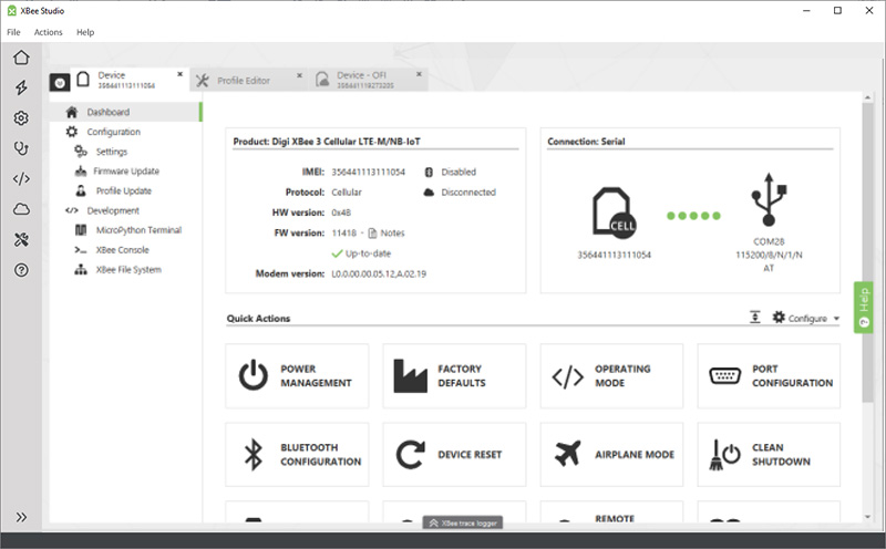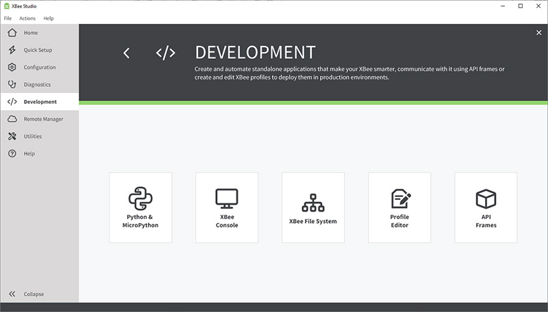 - さまざまなツールへのアクセス:内蔵されたツールを使用して、Digi XBee プロファイルの作成やデバイスのリカバリなどの操作を実行できます。