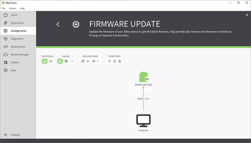 また、Digi XBee Studioは、コンフィグレーション、診断、開発、リモートマネジメント、その他のユーティリティの追加オプションを含む、よりシンプルで段階的なデバイスへのアクセスと管理方法を提供します。