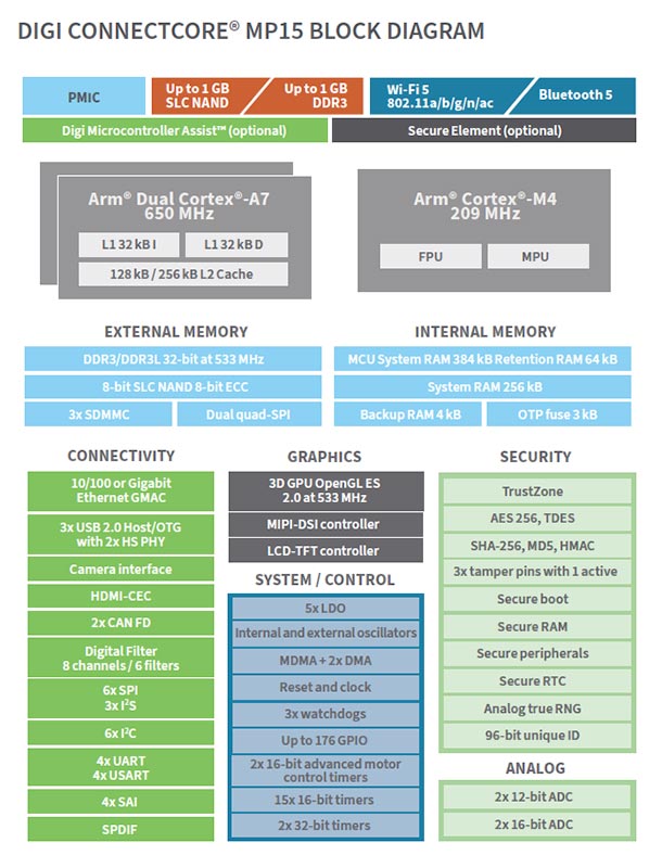 Digi ConnectCore MP157 は、インダストリアル向けおよび医療向けに設計されており、高いレベルのセキュリティ、信頼性、パフォーマンス、10 年以上の寿命を備えています。Digi SMTplus® 表面実装フォームファクタは、簡易化された設計インテグレーション、柔軟性、効率性を提供します。