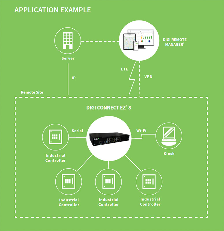 ほとんどの企業は、機器を交換するのではなく、機器との通信手順やデータのやりとりの方法を更新しています。Digi Connect EZ® 8は、今日のアプリケーションのために拡張されたネットワークコネクティビティと機能性により、運用インフラを最新化します。本製品は、オートメーション、ロボット制御、集中デバイス管理、データ収集、POS機器への接続など、幅広いクリティカルなシリアルアプリケーションの要求を満たすよう設計されています。