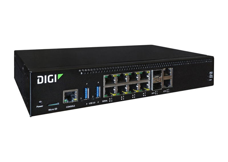 - デュアル SPF+ をサポートするデュアル 10/100/1000 イーサネット、Digi CORE® LTE モジュールサポート、データログ収集用のmicro SD、2 つの