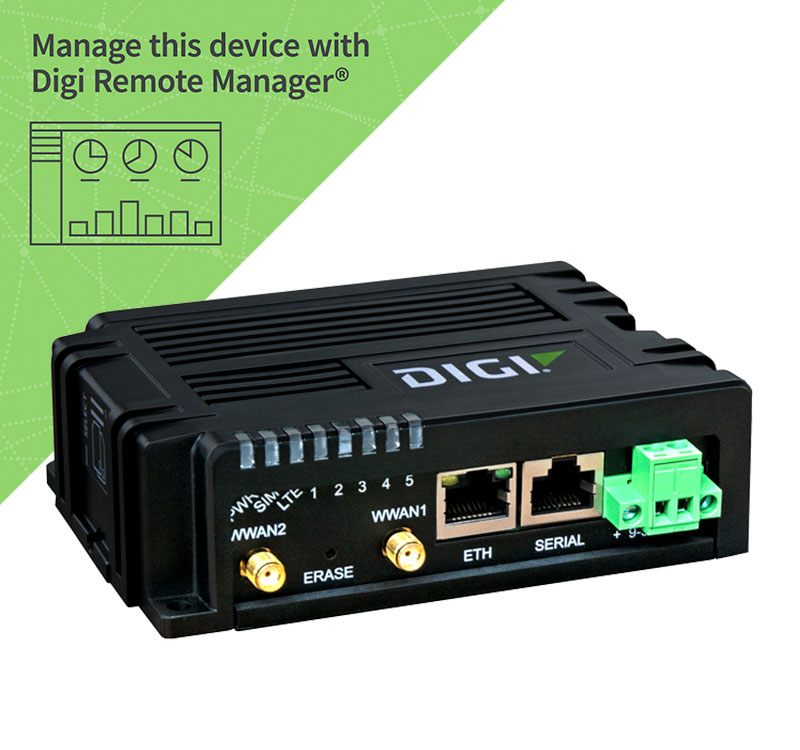 - Digi Remote Manager®プラットフォームを使用して、容易なセットアップ、大規模コンフィグレーション、管理を実現