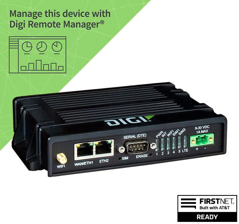 - Digi Remote Manager®プラットフォームを使用して、容易なセットアップ、大規模コンフィグレーション、管理を実現