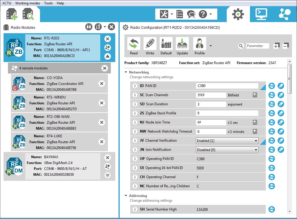 - Digi XBee3は、ZigBee、802.15.4、DigiMesh、BLEなどあらゆるプロトコルを1つのモジュールで実現し、Digi XCTU経由でコンフィグレーション可能