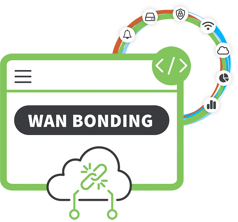 Bondingは、複数のセルラー接続と有線接続を組み合わせ、回復力のあるシームレスなハンドオーバーと併用し結合されたインタフェースのレイテンシを最小限に抑え、結合されたインタフェース全体で最高のスループットを実現します。