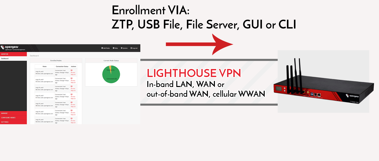 Lighthouseは、ITインフラストラクチャの帯域外管理を一元化し、重大な障害が発生した場合でも、他に類を見ないレベルの回復力のあるアクセスと可視性を提供します。